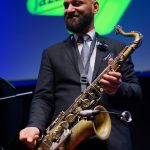 Komponist und Saxophonist Eli Degibri (Tenor- & Sopran-Sax) begeisterte zusammen mit Eviatar Slivnik (Schlagzeug), Tom Oren (Piano) und Tamir Shmerling (Kontrabass) das Publikum der Messehalle mit sehr virtuosen Improvisationen.