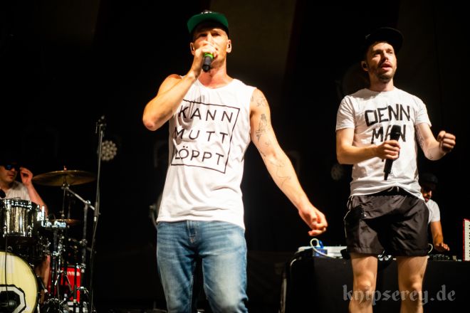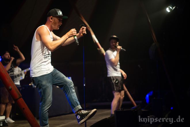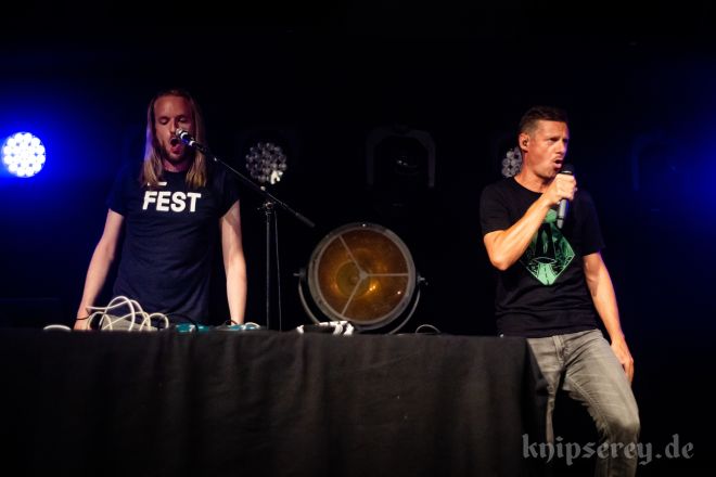 Als Headliner des Abends gab es im Bremen Vier Zelt plattdeutschen Elektro-HipHop von „De fofftig Penns“ aus Bremen-Nord. Es war eine der letzten Möglichkeiten, die vier Jungs nochmal live zu erleben – denn nach 15 Jahren Band-Geschichte gehen sie ab Ende dieses Jahres leider getrennte Wege – die Abschiedskonzerte finden am 22.12. in Hamburg und 23.12. in Bremen statt.