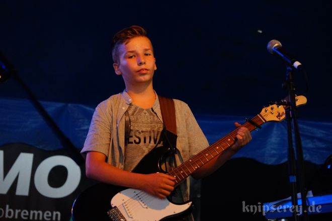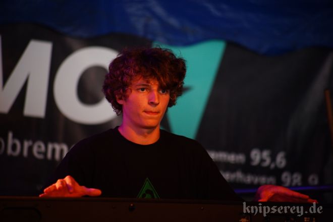 Bevor ich ins Nachbarzelt zum Band-Contest „Live in Bremen“ ging, konnte ich noch ein paar Minuten von Sleepy T sehen. Die Band gibt es seit 1 Jahr und es war – so die Moderatorin – ihr erster großer und wohl zugleich auch ihr letzter großer Auftritt, da sich die Wege der Band-Mitglieder durch Studium und Ausbildung bald trennen werden. Schade eigentlich.