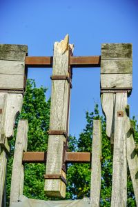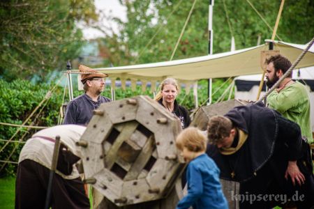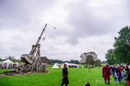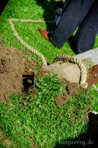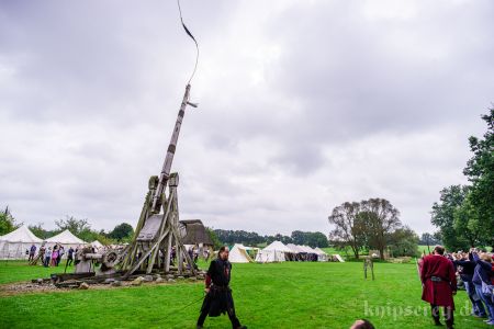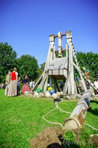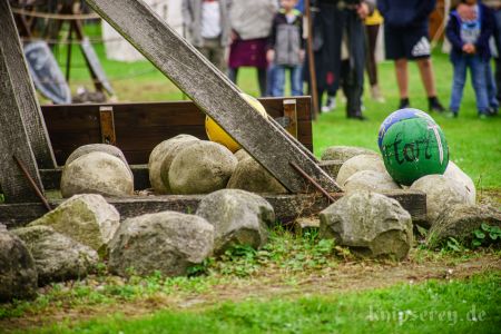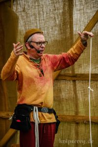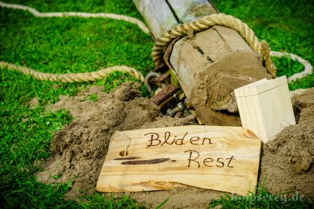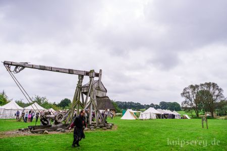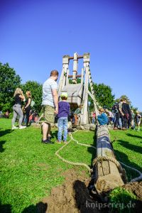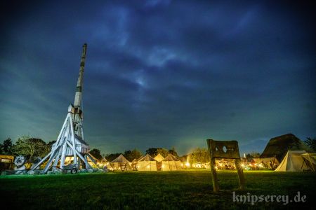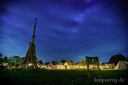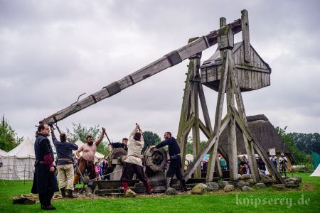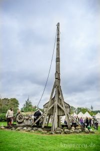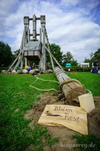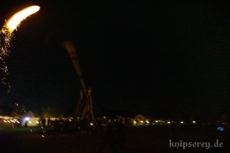Wir hatten über den Beckdorfer Raubritter Isern Hinnerk – bürgerlich Heinrich von Borch – welcher mit Bliden belagert wurde, gerade ein Lied geschrieben und vor der Blide uraufgeführt… danach war die Blide das letzte Mal in Aktion… nachdem der Stein geworfen wurde, gab es ein lautes Knacken und der Arm der Blide krachte zu Boden… einen halben Tag zu früh… :-/