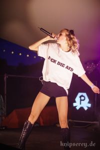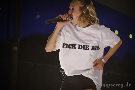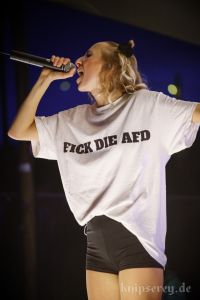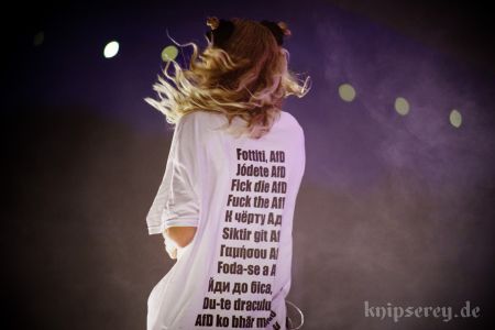 Leider kam ich erst, als schon das letzte Lied gespielt wurde und dann gab es noch eine Zugabe… Sie sind jung, frech, queer, gegen das Patriarchat – sehr erfrischend und mit einem sehr sympathischen T-Shirt. 😀
