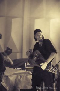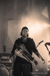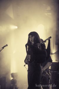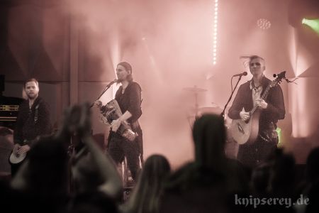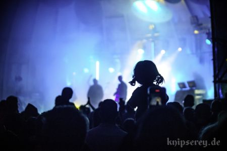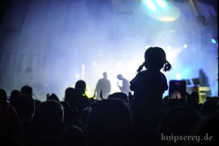 Grelle LED-Scheinwerfer von hinten, jede Menge Bühnennebel, keine Ausleuchtung von vorne.