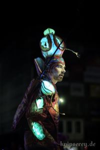 Am Samstag waren zudem auch noch die Künstler von Stelzen-Art mit ihren leuchtenden Kostümen unterwegs.