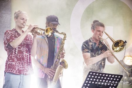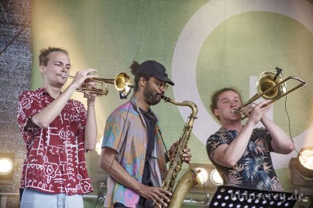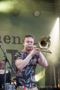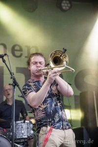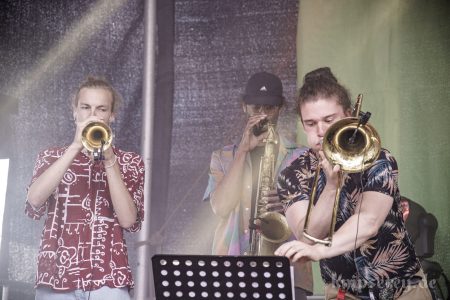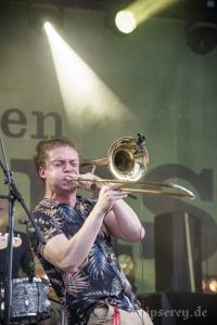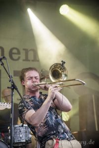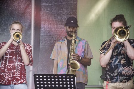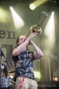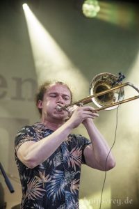 Diesmal hatten sie in der zweiten Hälfte des Konzertes sogar Bläser-Unterstützung durch „One Drop Horns“.